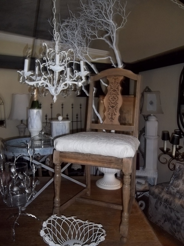 and upholstered in a blue dotted velour fabric. I had the fabric left over from my grandaughters nursery her mom and I did 5 years ago 'really already!!' - So that, combined with my $2 chair - now sits at my dressing table. Pretty Coolio!!! Lori